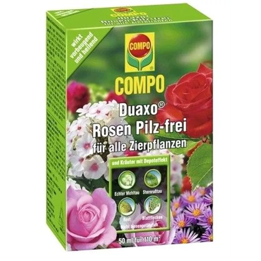 Vollsystemisches Fungizid-Konzentrat gegen Sternrußtau, Echten Mehltau, Rost und Blattflecken an Rosen, Zierpflanzen und -gehölze für Gewächshaus und Garten. SB-Verbot