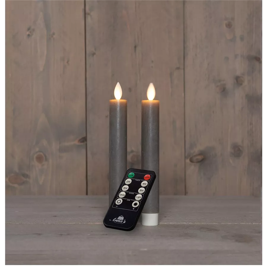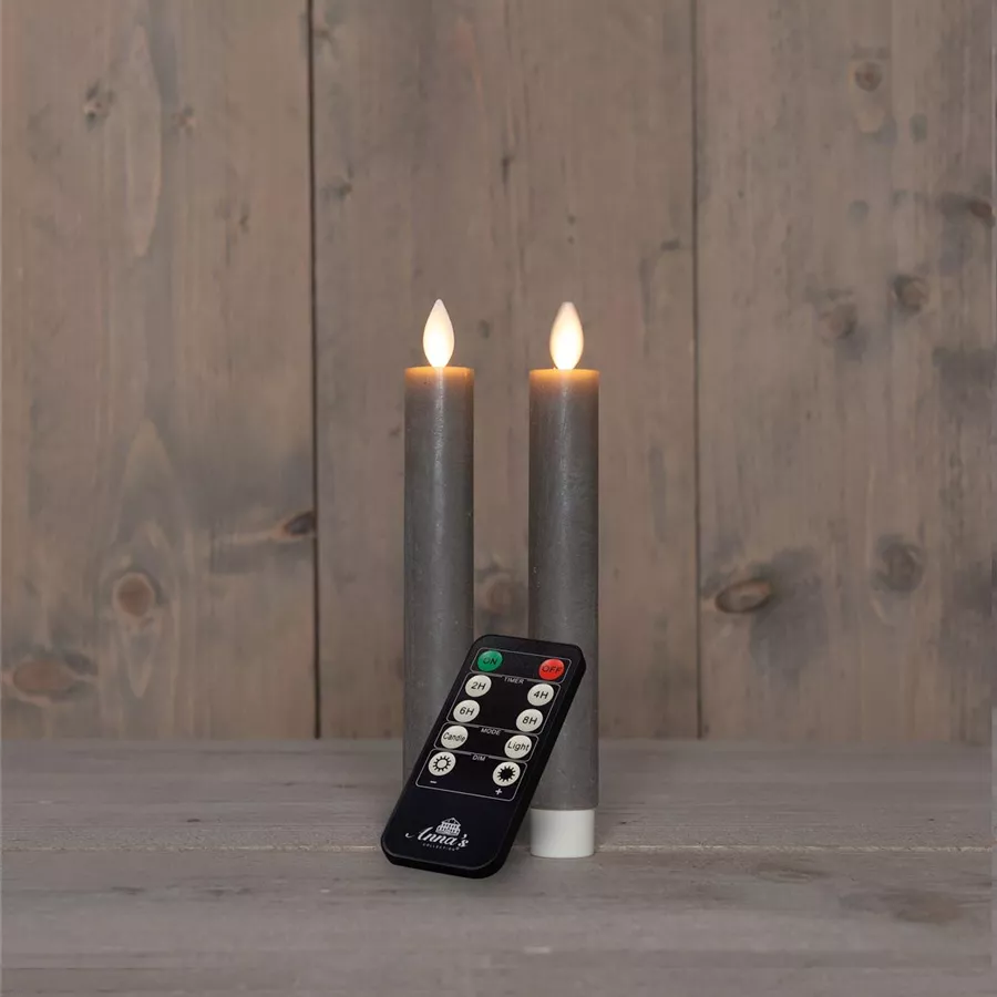 STABKERZE RUSTIKAL WACHS BEWEGLICHE FLAMME AUFLADBAR MIT FERNBEDIENUNG UND USB-KABEL 18CM TAUPE 2 STÜCK