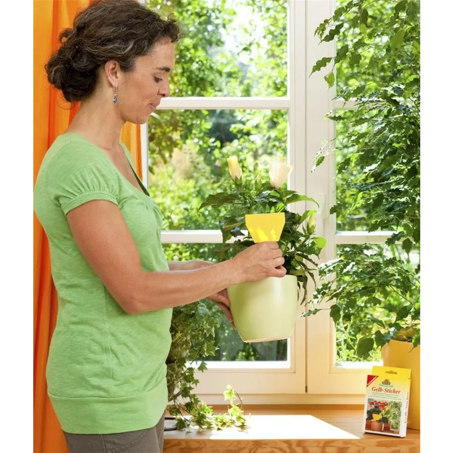 Falle zum Abfangen fliegender Schadinsekten. Fängt Weiße Fliege, Minierfliege, Trauermücke u. a. fliegende Schädlinge an Zimmerpflanzen.
